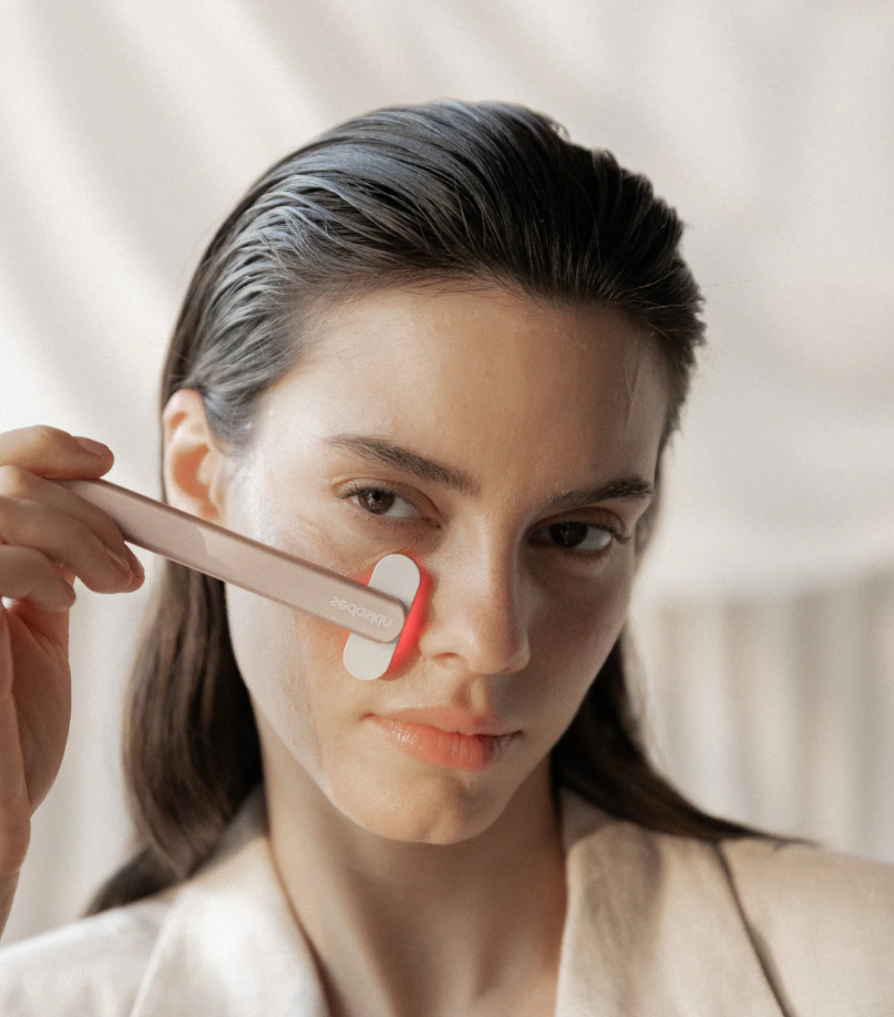 Avec une longueur d’onde spécifique et une irradiance suffisante pour pénétrer l’épiderme et le derme, la lumière rouge agit sur les cellules et les récepteurs naturels de notre tissu, rajeunissant le teint, adoucissant la texture et la pigmentation, pour une peau plus lumineuse et éclatante.